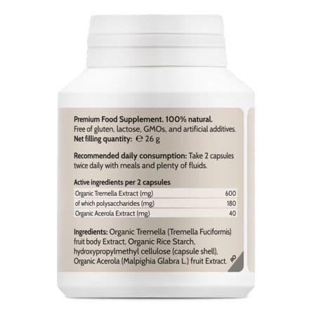 Extract ecologic de Tremella: 600 mg din care polizaharide bioactive: 180 mg.